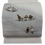名古屋帯 逸品 祥園 落款あり 八寸名古屋帯 松葉仕立て 雲林綴 雀 灰茶 正絹 中古