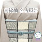 すごい値! 名古屋帯 八寸 真綿紬 リサイクル 正絹 変わり織 白 グレー 格子 カジュアル 春 秋 冬 帯 中古 仕立て上がり みやがわ neb01474