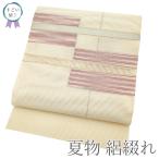 すごい値! 夏物 名古屋帯 八寸 未使用 絽綴れ 正絹 アイボリー スクエア 霞横段 夏帯 上質 美品 新古品 仕立て上がり みやがわ neb01642