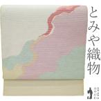 名古屋帯 京都 西陣 とみや織物 八寸 開き仕立て 正絹 霞 雲 水色 淡黄ベージュ 多色 カジュアル 中古品 仕立て上がり みやがわ sb55009