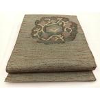 美品 名古屋帯 優品 八寸名古屋帯 華文 草花 金糸 灰色 正絹 中古
