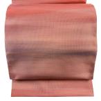 美品 名古屋帯 優品 八寸名古屋帯 松葉仕立て 縞 霞 サーモンピンク 正絹 中古