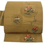美品 名古屋帯 優品 八寸名古屋帯 草花 黄土色 正絹 中古