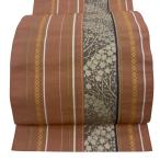 名古屋帯 優品 八寸名古屋帯 縞 枝花 小豆色 正絹 中古