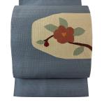 名古屋帯 優品 八寸名古屋帯 松葉仕立て 枝花 青灰色 正絹 中古