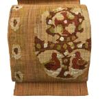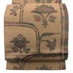 美品 名古屋帯 優品 八寸名古屋帯 松葉仕立て 草花 薄茶色 正絹 中古