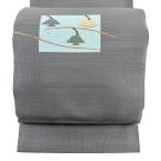 名古屋帯 秀品 八寸名古屋帯 松葉仕立て ふくろう 枝葉 灰色 正絹 中古