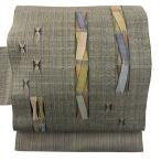 名古屋帯 秀品 夏帯 絽 八寸名古屋帯 松葉仕立て 幾何学 刺繍 灰色 正絹 中古