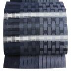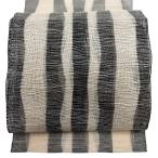 名古屋帯 秀品 夏帯 トンネル仕立て 八寸名古屋帯 よろけ縞 銀糸 墨色 正絹 中古