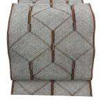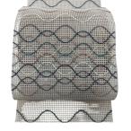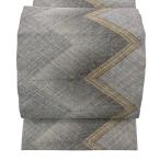 名古屋帯 秀品 八寸名古屋帯 松葉仕立て 幾何学 金糸 灰白 正絹 中古