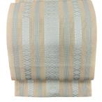 名古屋帯 秀品 松葉仕立て 八寸名古屋帯 縞 幾何学模様 ベージュ 正絹 中古