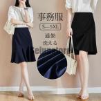 事務服 スカート 制服 フレア 洗える レディース 膝丈 オフィス ビジネス 通勤 OL ウエストゴム 企業 ユニフォーム