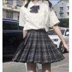 プリーツスカート 長袖シャツ 4点セット チェック Aライン ミニスカート 同柄リボン付き ネクタイ 女子高校生 定番 学生 スクールスカート 制服 スカート 通学 膝上 ミニプリーツスカート コスプレ衣装 リアル コスチューム セーラー服 女子高生 制服 リボン スカート