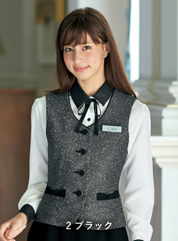 【10%OFFクーポン対象★11/20 20時~4H限定】ベスト ツイード ブラック 黒 ホワイト 白 5-19号 制服 オフィス 事務 事務服 企業制服 レディース オフィスユニフォーム ビジネス 仕事用かわいい アンジョア enjoie