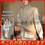 ハイネック ニットベスト レディース ニットベスト ざっくり編み ケーブルニットベスト ハイネック ノースリーブ 防寒 秋 秋物 秋服 冬 冬物 冬服