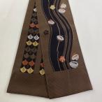 半幅帯 名品 博多織 証紙有 うさぎ 梅 箔 焦茶色 正絹 中古