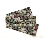 半幅帯 正絹 -38B- 博多織 長尺 絹100% 日本製 藍鉄/藍鼠/黒 華文/裂取