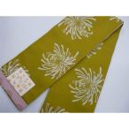洗える 半幅帯 細帯 両面 カラシ 乱菊 桃色 水玉 148