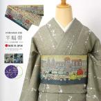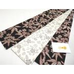[日本製] 細帯 半巾帯 長尺 紬風 絹 カサブランカ (グレーベージュ 950-2101-B) 単品 両面OK リバーシブル 染帯 花 フラワー 召しませ花 召しませ華(ma602)