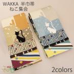WA・KKA ねこ集会 レディース 仕立て上がり 正絹 半幅帯 半巾帯 ワッカ オレンジ ブルーグリン