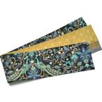 半幅帯 WAKKA 孔雀王 黒 ターコイズ 青 黄土 正絹 リバーシブル 長尺 変わり結び