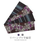 半幅帯 帯 半巾帯 普段用 茶色 黒 流花更紗 リバーシブル 召しませ花 カジュアル 絹 長尺 日本製