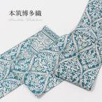 半幅帯 長尺 正絹 リバーシブル 博多織 紋織 花浅葱 ダマスク 幾何学模様 小袋帯