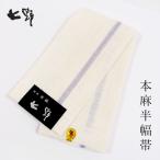半幅帯 麻 七野 宮岸貞雄 西陣織 本麻 一本間道 白練 日本製 小袋帯 無地 仕立て済み