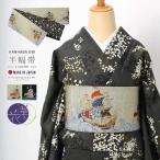 半幅帯 黒 長尺 帯 リバーシブル 召しませ花 帯 芍薬 日本製 【 半巾帯 絹 小紋 紬 街着 両面 細帯 着物 カジュアル 小袋 浴衣 おび 】