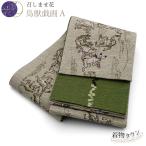 半幅帯 正絹 召しませ花 鳥獣戯画A リバーシブル 両面 灰色 グレー 緑 グリーン 浴衣 長尺 ゆかた 細帯 半巾帯 日本製 紬 小紋 洒落着