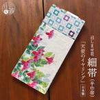 半幅帯 召しませ花 カラフルガーデン ベージュ 花 鳥 紅型風 日本製 リバーシブル 変り結び 細帯 長尺