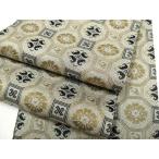 美品 半幅帯 秀品 幾何学模様 金糸 ベージュ 正絹 中古