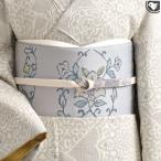 半幅帯 正絹 リバーシブル 博多織 小袋帯 長尺 4m グレー 白 ブルー 花紋 雪花 柄 着物 レディース 女性 仕立て付き 送料無料