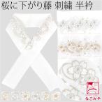半衿 刺繍 半襟 袷用 日本製 京都万里小路 塩瀬 刺繍半衿 白 桜に下がり藤 訪問着 成人式 振袖用 ポリエステル レディース