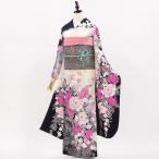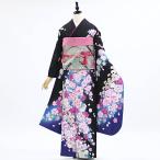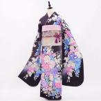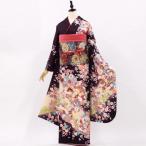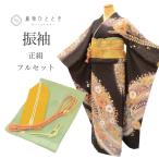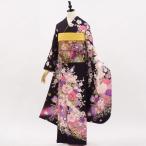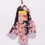 正絹振袖+半衿付き長襦袢+帯+帯揚+帯〆+重衿 6点セット 大人の表情の黒ふりそで 着物だけなら29,700円(税込)