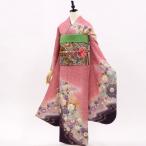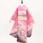 【中古】正絹 振袖 フルセット 販売6点セット 半衿付き長襦袢・帯・帯揚・帯〆・重衿付き 桜舞う大人ピンク 着物だけなら30,800円(税込)