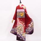 振袖販売6点セット 半衿付き長襦袢・帯・帯揚・帯〆・重衿付き 上品で清楚な古典柄の赤【正絹】【中古】着物だけなら23,100円(税込)