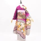 【中古】正絹振袖 販売6点セット 半衿付き長襦袢・帯・帯揚・帯〆・重衿付き 大人の上品パープル 着物だけなら36,300円(税込)