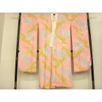 平和屋着物●振袖用長襦袢 無双仕立て 束ね熨斗花地紋 桜色 半衿刺繍 正絹 逸品 AABF0731fy