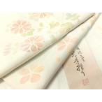 平和屋着物●長襦袢 袷 舞桜地紋 縞 暈し染め 半衿刺繍 正絹 逸品 AABF0652fy