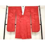 平和屋着物●振袖用長襦袢 無双仕立て 雲霞貝桶地紋 深緋色 半衿刺繍 正絹 逸品 DABB0433ud