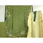 平和屋本店■極上 世界的人形師 辻村寿三郎 ジュサブロー 振袖・長襦袢(無双仕立て・半衿刺繍) 兎 舞花 草色地 逸品 DZAA6183kh5