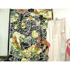 平和屋本店■極上 振袖・長襦袢(無双仕立て・半衿刺繍)セット 観世水 四季花文 黒地 金彩 逸品 DZAA6684kh5