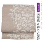 名古屋帯 正絹 仕立て上がり 冬用 袷 単衣 レディース 帯 ベージュ 白茶 花 女性用 仕立て済み 新品 未使用 お茶 茶道 お茶会 フォーマル 初釜 茶事