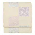 名古屋帯 正絹 夏 単衣 未使用 仕立て済み アイボリー 花 唐草 市松 夏帯 セミフォーマル 九寸帯 西陣織 佐々木染織 名古屋仕立て 帯 レディース 女性用