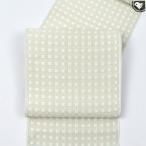 <単衣/夏/袷 オールシーズン帯> 西陣織 老舗機屋 謹製 雪輪よろけ織 九寸 名古屋帯 白 薄ベージュ