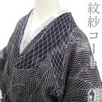 道中着 コート 単衣 紋紗 春 夏 秋 透け感 正絹 紫 ブルーグレー グレー 菱 新品 仕立て上がり 身丈110 裄68.5 Lサイズ みやがわ sb14060