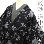 道中着 コート 単衣 紋紗 春 夏 秋 透け感 正絹 黒地 花唐草 唐花 カジュアル 新品 仕立て上がり 身丈110 裄69 Lサイズ みやがわ sb14473