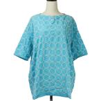 ミナペルホネン tambourine タンバリン 刺繍 キーネック ブラウス カットソー ライトブルー レディース 古着 中古