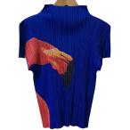 美品 PLEATS PLEASE ISSEY MIYAKE プリーツプリーズ イッセイミヤケ フラミンゴプリント カットソー PP51-JK772 サイズ3 ブルー レディース 古着 中古